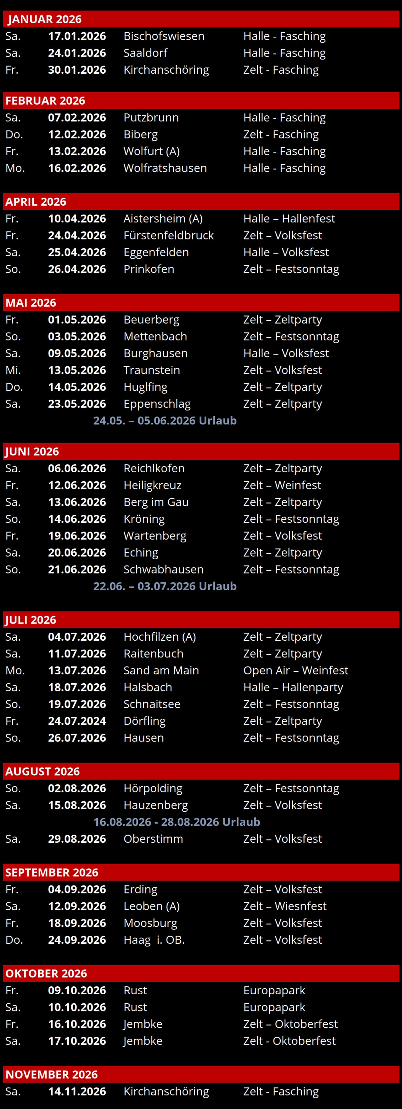 » div. Oktoberfeste/Pubfestivals in der